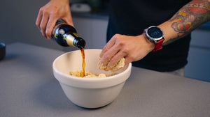 3. Add 40g cheese and 1 tbsp salt. Slowly add the Old Peculier one tablespoon at a time until you can bring the dough together into a ball. Wrap in cling film and refrigerate for at least 30 minutes or until ready to bake.